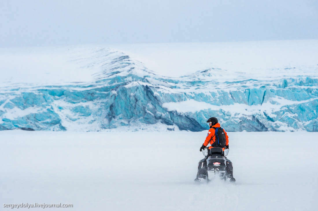So what kind of tourism is Svalbard for? Sporting tourism first and foremost: snowmobiling, dog sledding, skiing, and glacier snowboarding—whether a novice or a seasoned athlete, everyone can find here an entertainment to show their muscle and endurance in the icebound expanses. Svalbard is also famous for its Arctic cruises that go around the archipelago but may also reach more remote locations, such as Novaya Zemlya, Frantz-Joseph Land, or Greenland. It is also the starting point of any expedition to the North Pole for those who want a real challenge. Finally, some come here for the very air of Longyearbyen: a truly international place whose two thousand people actually come from 42 countries of the world, relaxed gun control laws, and a unique blend of Russian and Norwegian, both official languages here. Fun fact: there used to exist Russenorsk, a Russian-Norwegian pigeon, which has come out of existence in the 20th century as the Norwegians learned ‘textbook’ Russian while the Russians learned Norwegian.