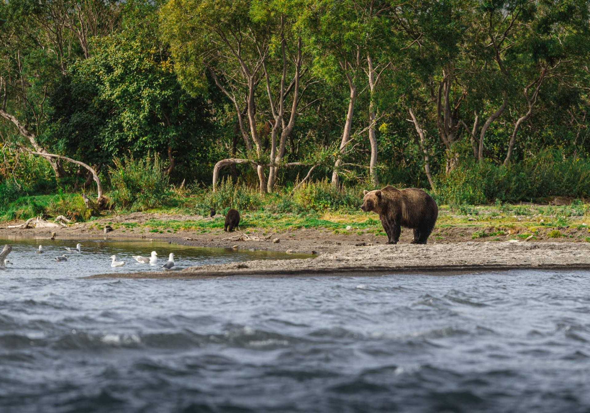 You can go fishing and observe wild animals. In July and August, bears hunt fish going to spawn on the banks of the Bystraya River. And in the sky you can see seagulls, wild ducks and white-shouldered eagles.