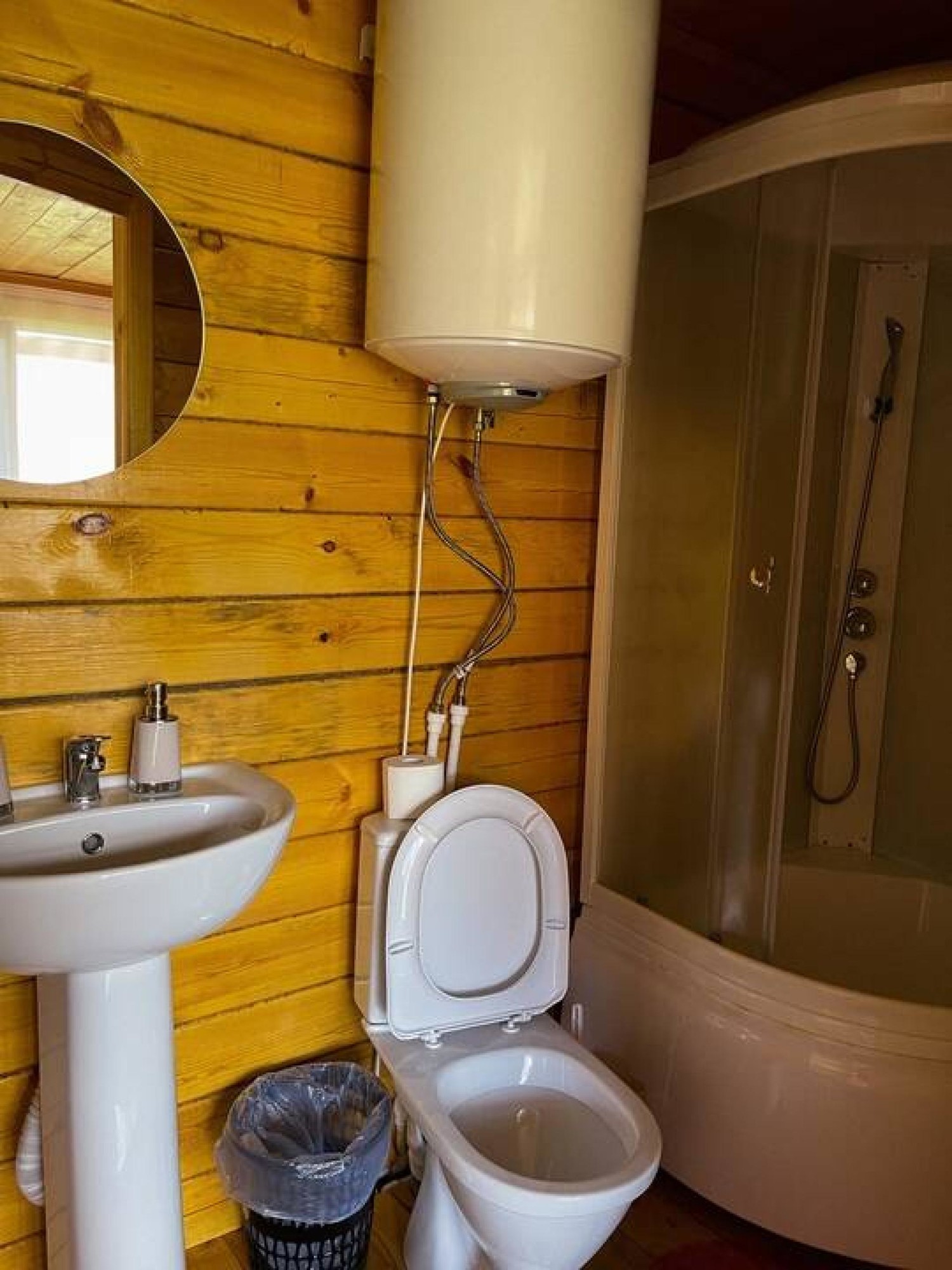 For another two nights you will stay in Dolina Vodopadov tourist base (Rus. for The Waterfalls Valley). It is located in the Chulyshman Valley. There are 12 warm houses, a cafe, and a Russian sauna with a small swimming pool on the territory. Each house has 3 twin beds, a stove, and a toilet with a sink.