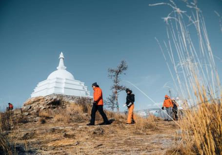 After breakfast, you will set out by hovercraft to the iconic ice locations of the southern Maloye More. Your first stop will be Ogoy Island, home to the Buddhist Stupa of Enlightenment. Here, you can make a wish by walking around the stupa and photograph the stunning panoramic views of Baikal.