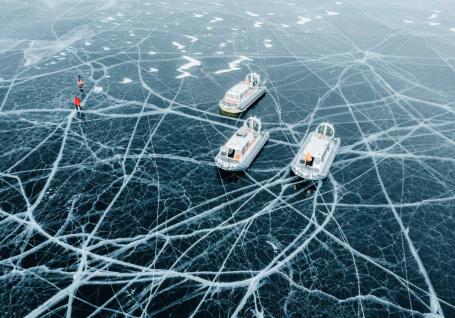 In just three days, you will have time to visit the lake's most beautiful spots and witness the incredible ice of Baikal in all its forms: in caves, grottos, splash formations, and across the vast surface. You won't be limited to the Small Sea area but will also venture onto the open expanse of Big Baikal aboard an hovercraft. These areas are renowned for having the most beautiful and pristine ice on the planet.