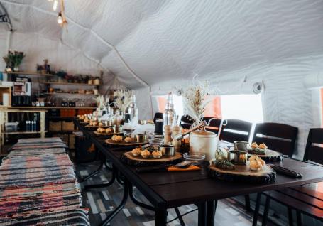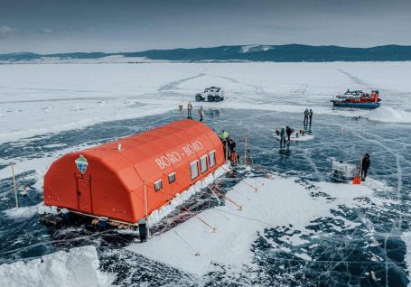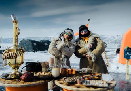 Lunch will be served at the "Boro-Boro" Ice Station - the first arctic-style base on Lake Baikal. Here, you can learn about the region's geography and research, visit various photo zones, and even send a postcard from the very center of the lake. You will be treated to aromatic hot-smoked Angara trout, a hearty fish soup (ukha), and a selection of traditional Siberian pickles and preserves.