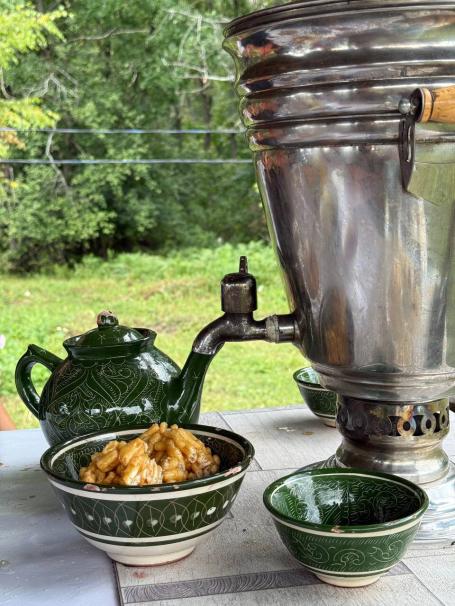 The heart of the day is a visit to sacred Mount Narystu, a revered pilgrimage site. At its summit rest two companions of the Prophet Muhammad, and at its foot flows the Holy Spring Izge Gali, which miraculously never freezes. Here, you will ascend the mountain, admire the beautiful monument and the Sahaba Mosque, and draw water from the sacred spring. You can make a wish, wash your face, and, if you wish, take a dip in the waters to recharge your health and energy.