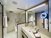 Balcony (25 sq.m.): two single beds or a double bed, sitting area with sofa, a flame-effect fireplace, luxurious bathroom, and a private 5 sq.m. balcony