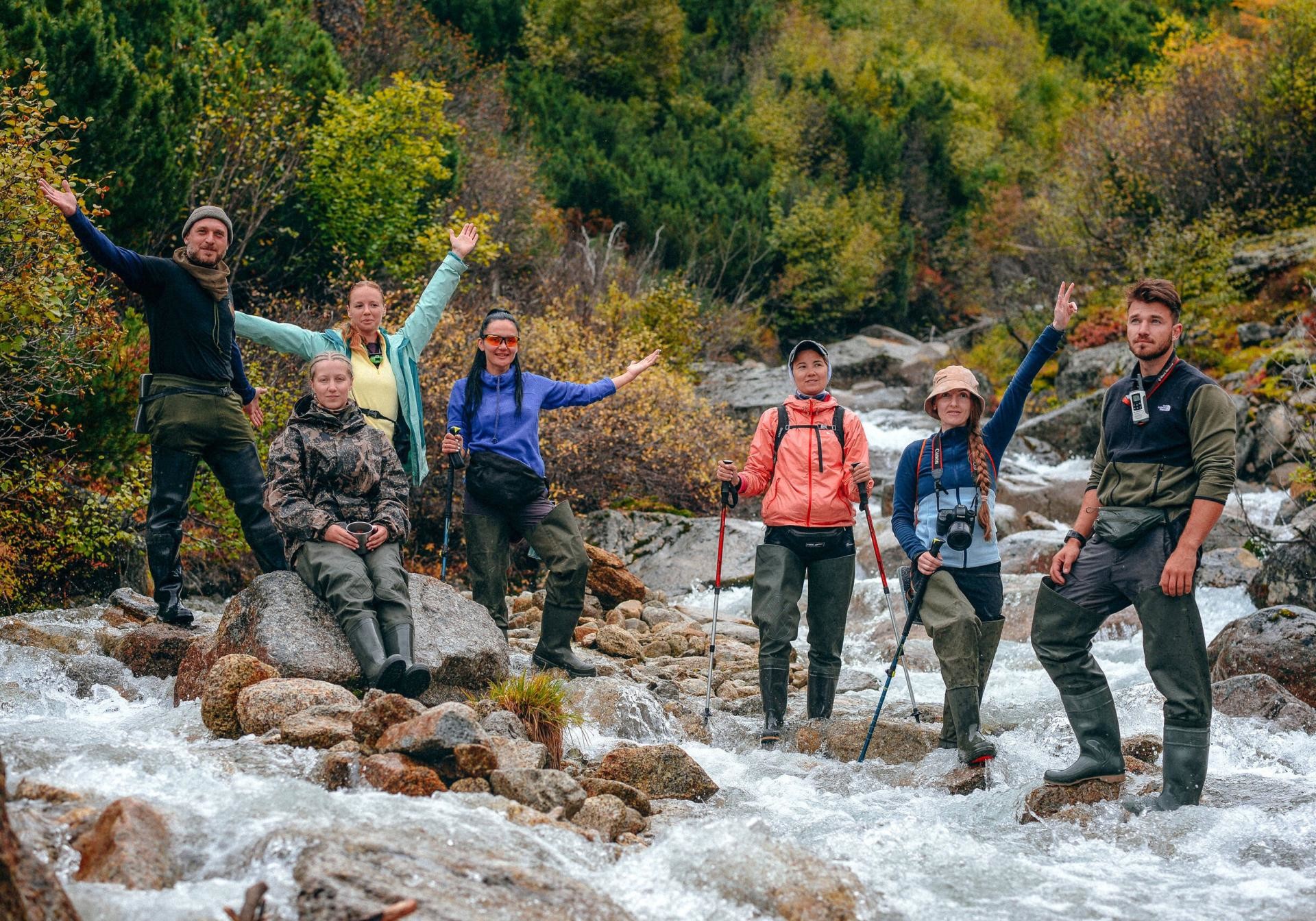 After having a snack by the stream, you will enter the valley of the Nevedomy mountain stream — you will traverse five kilometers of this section in wading boots (route length: 7 km, journey time: 4 hours with an elevation gain of 315 m).