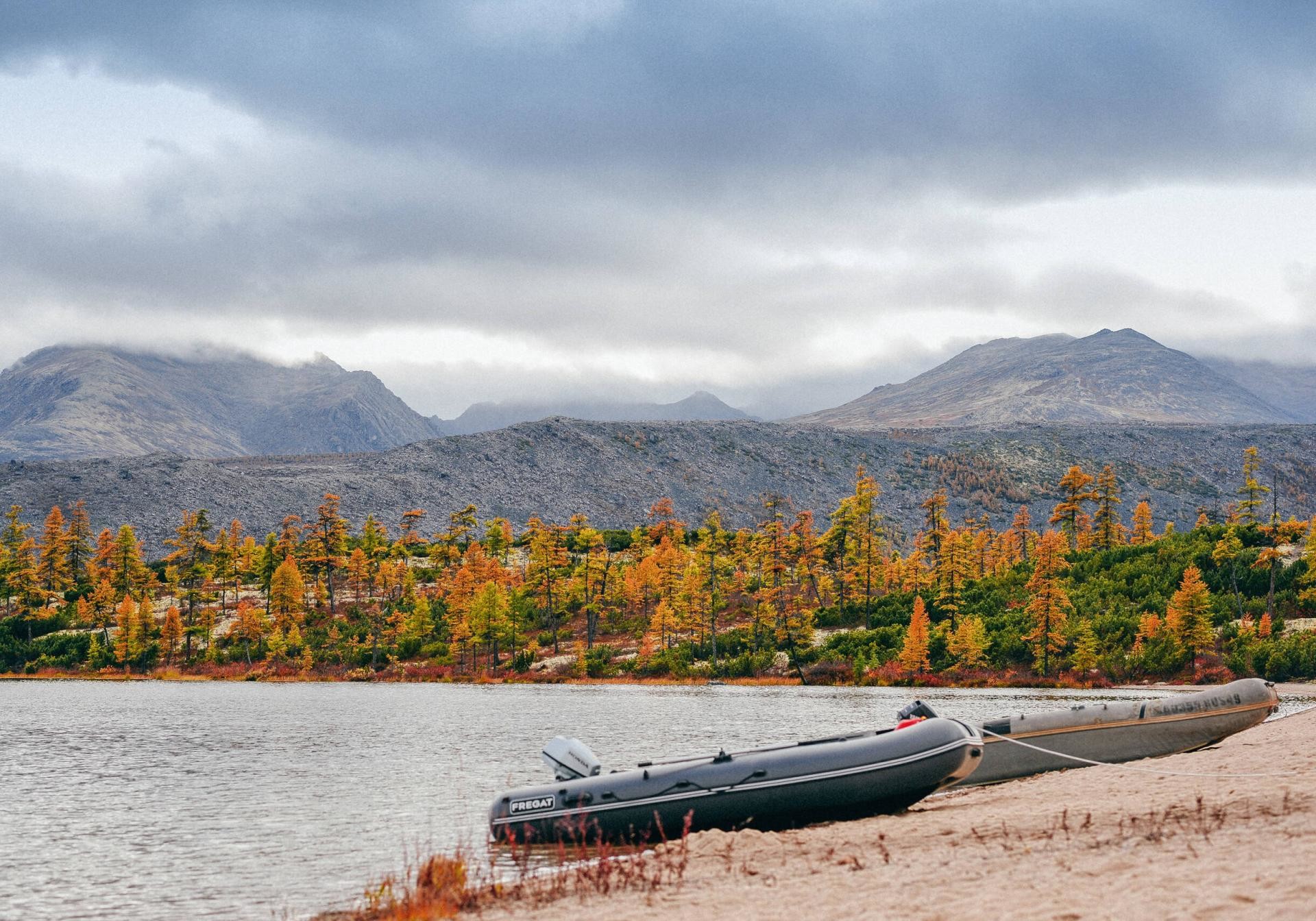 Upon reaching the lake, you will load your belongings and board motorboats, accommodating 6 people each, to travel to the valley of the Nevedomy stream (route length: 4 km, travel time: 20 minutes). You will moor the boat at Vera Island, home to a weather station.