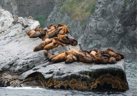 Next, you will go out to the Pacific ocean. If you are lucky, you will meet the seals, whales and killer whales. If not, do not worry — you are going to visit Starichkov Island, where you will watch the largest sea bird rookery in Kamchatka.