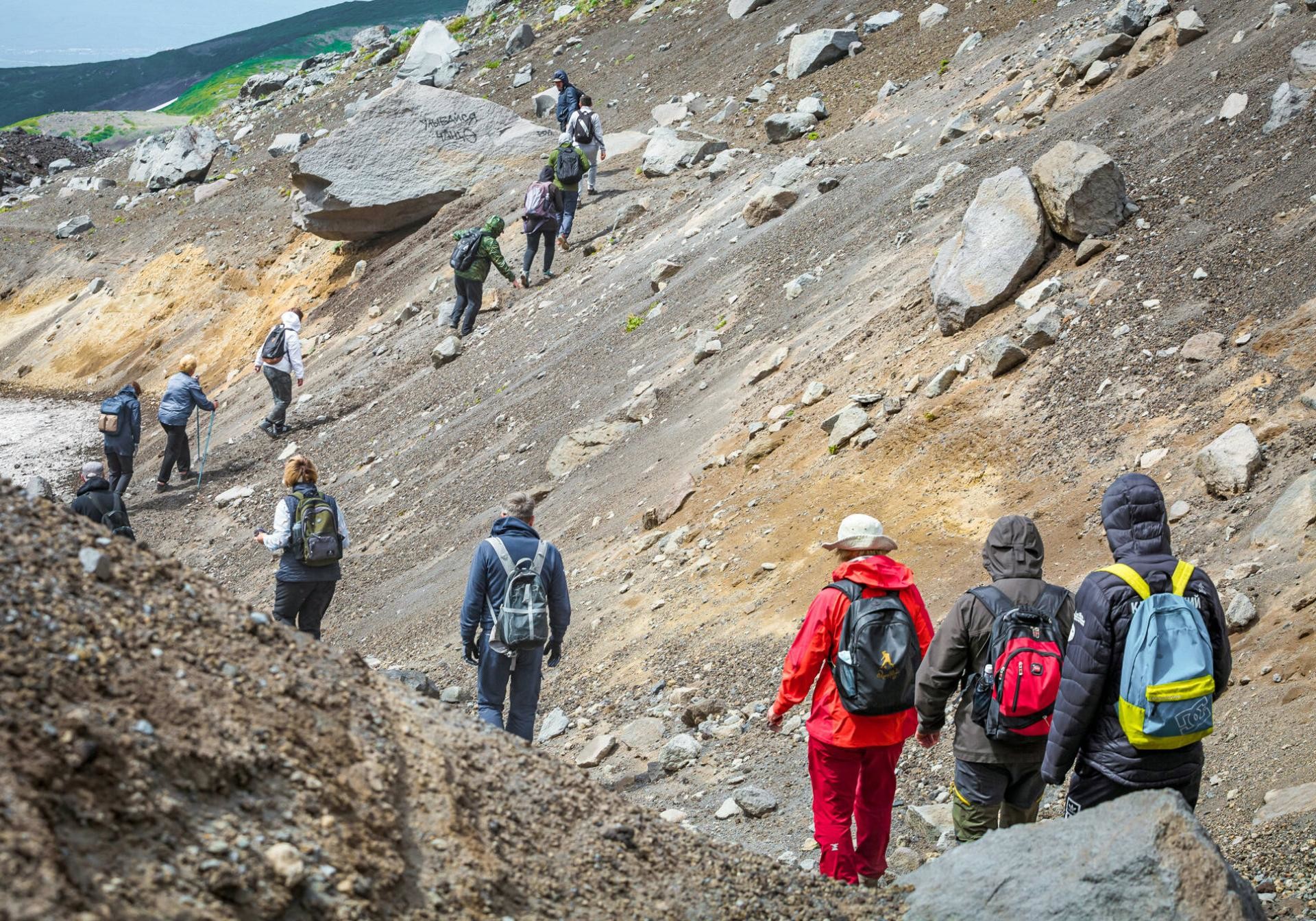 After breakfast, you will travel in an all-terrain vehicle along the bed of the Sukhaya River to the active Avachinsky and Koryaksky volcanoes, reaching the Avachinsky Pass (2 hours). You will ascend Camel Mountain with a relative height of about 250 meters and walk along the spurs of the volcanoes.