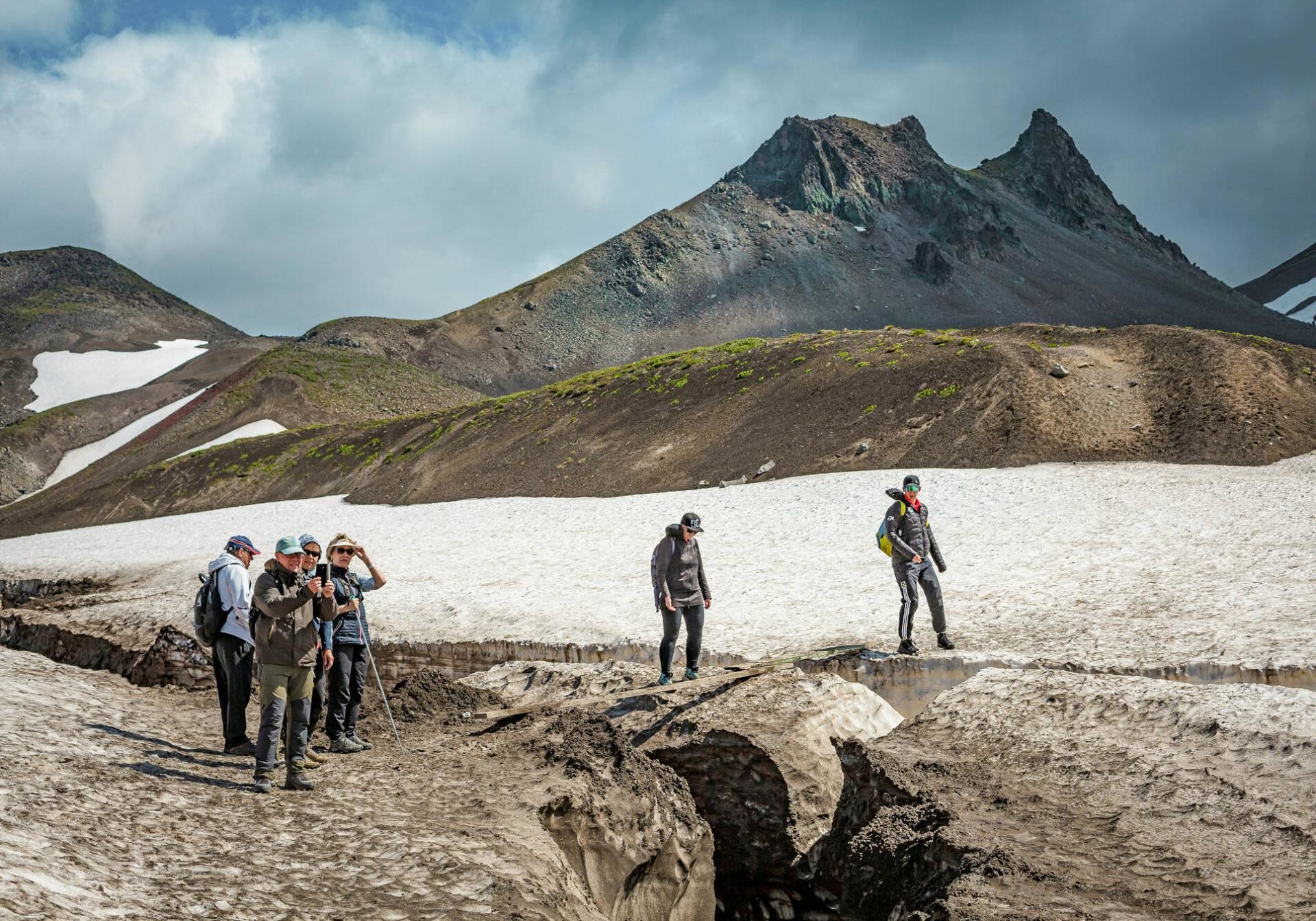 In one week, you will visit all the must-see spots of Kamchatka that you've likely seen on social media and travel blogs. You will explore the fumarole fields of the Mutnovsky volcano valley. You will ascend a low mountain near the Avachinsky volcano — with an elevation gain of no more than 250 meters, so no special physical preparation is required. You will also enjoy a boat trip that will introduce you to the nature and inhabitants of the Avacha Bay waters.
