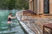 The complex is located on the shore of Lake Mikizha, near the village of Paratunka.