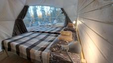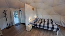 Accommodation is in insulated double domes with a terrace and panoramic views. Each dome is furnished with either one double bed or two single beds and has a private bathroom. The glamping site also features a café and a traditional bathhouse.