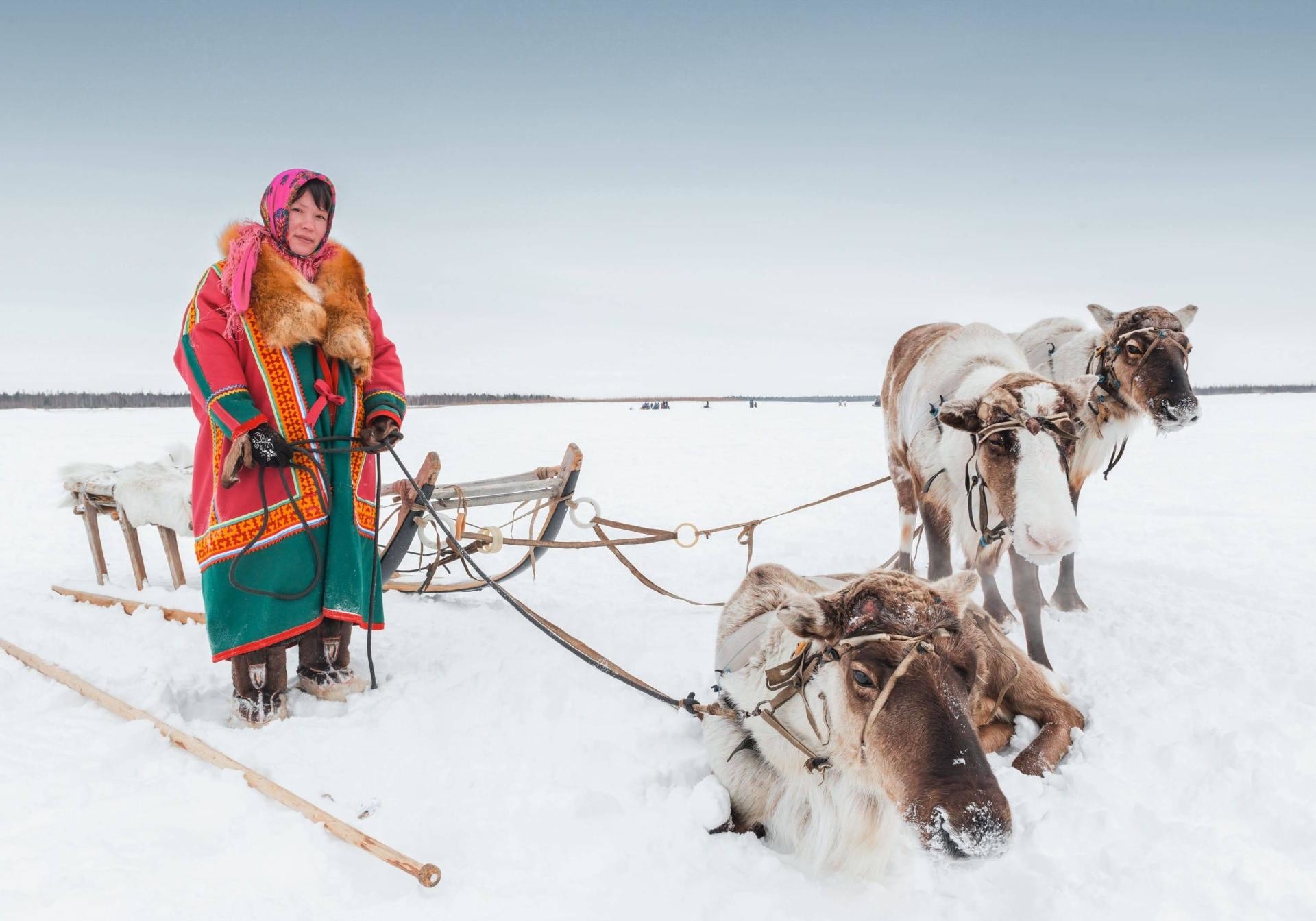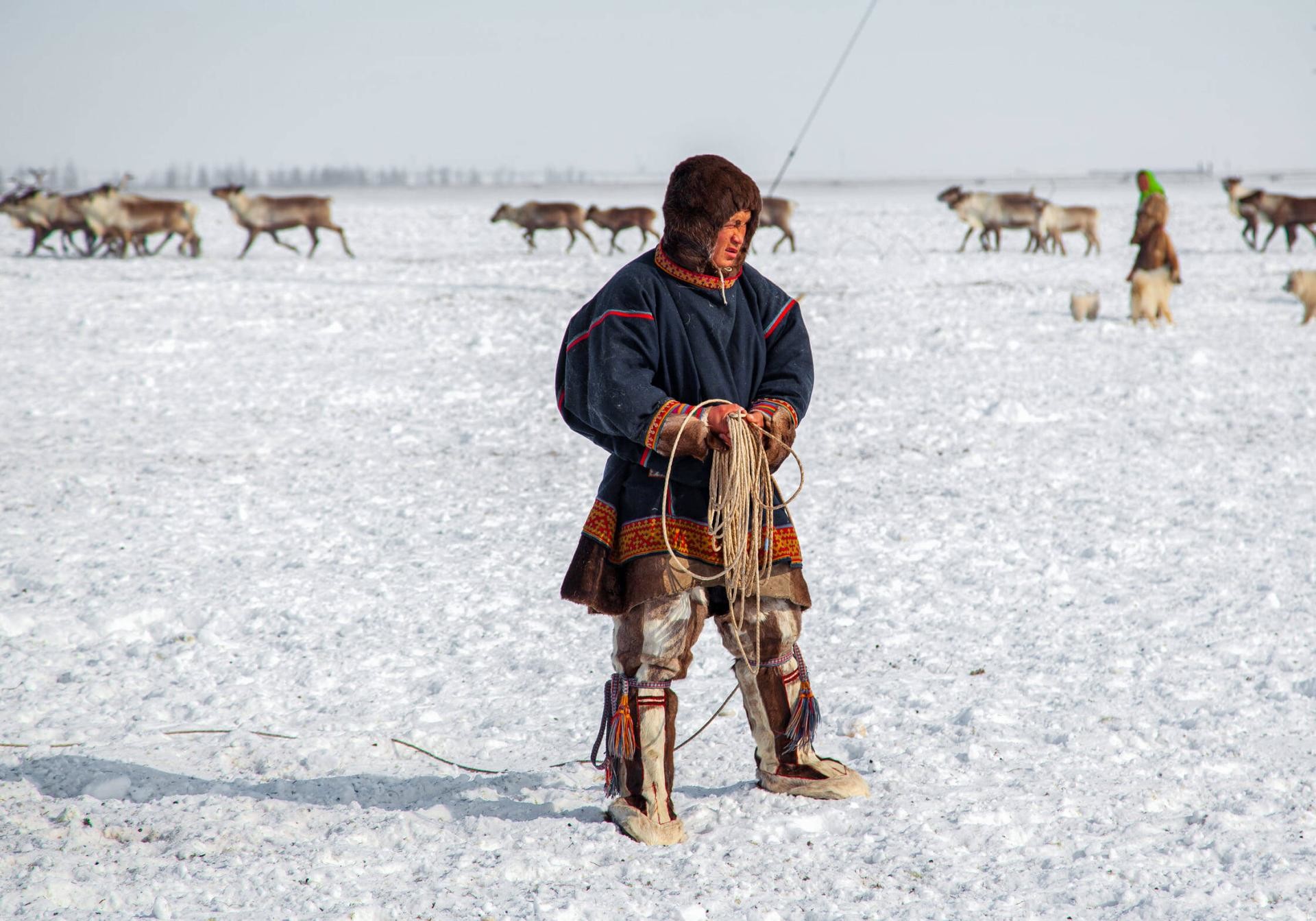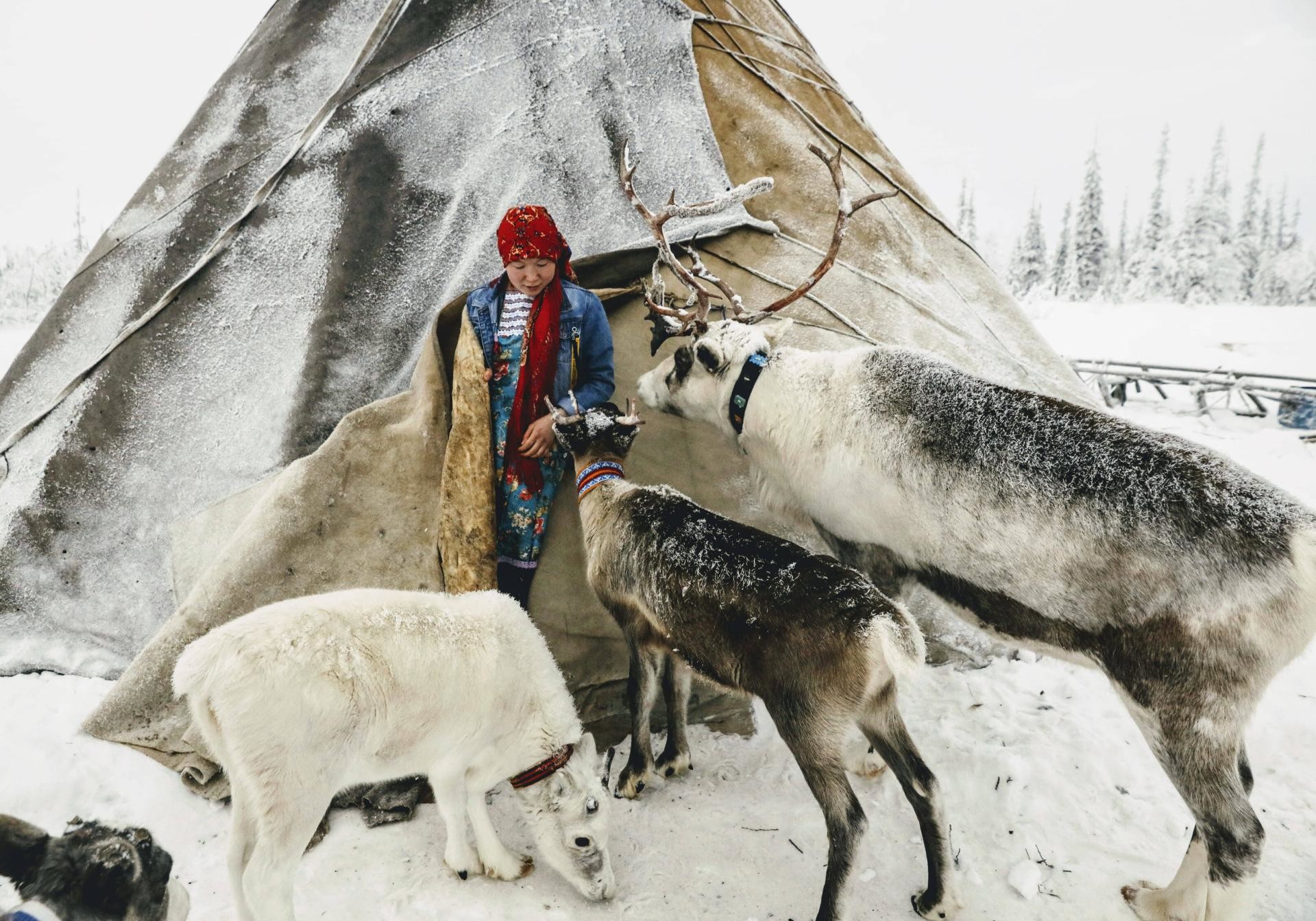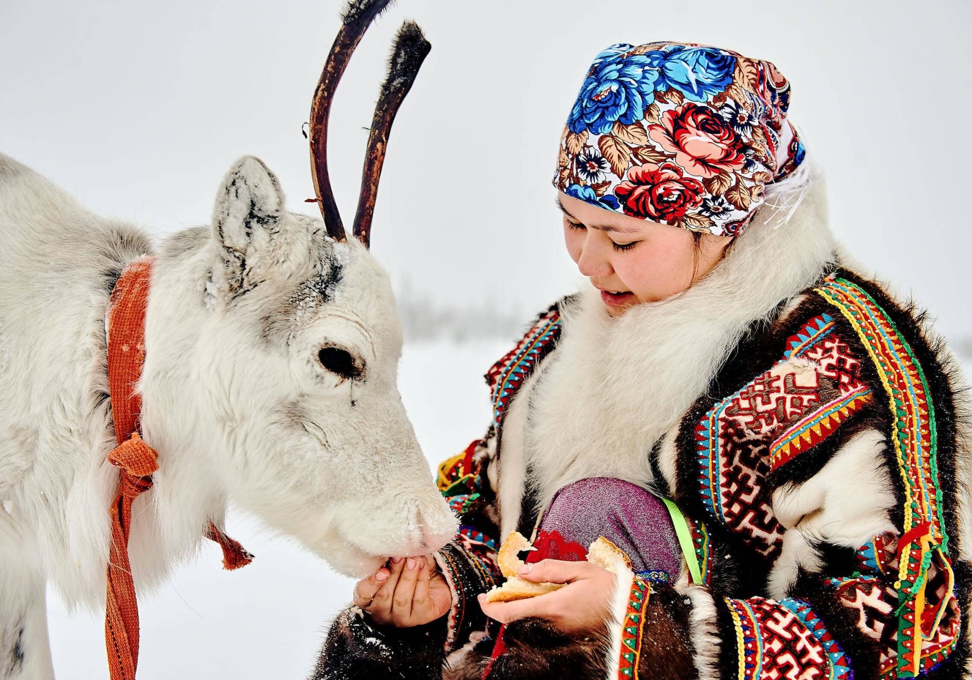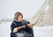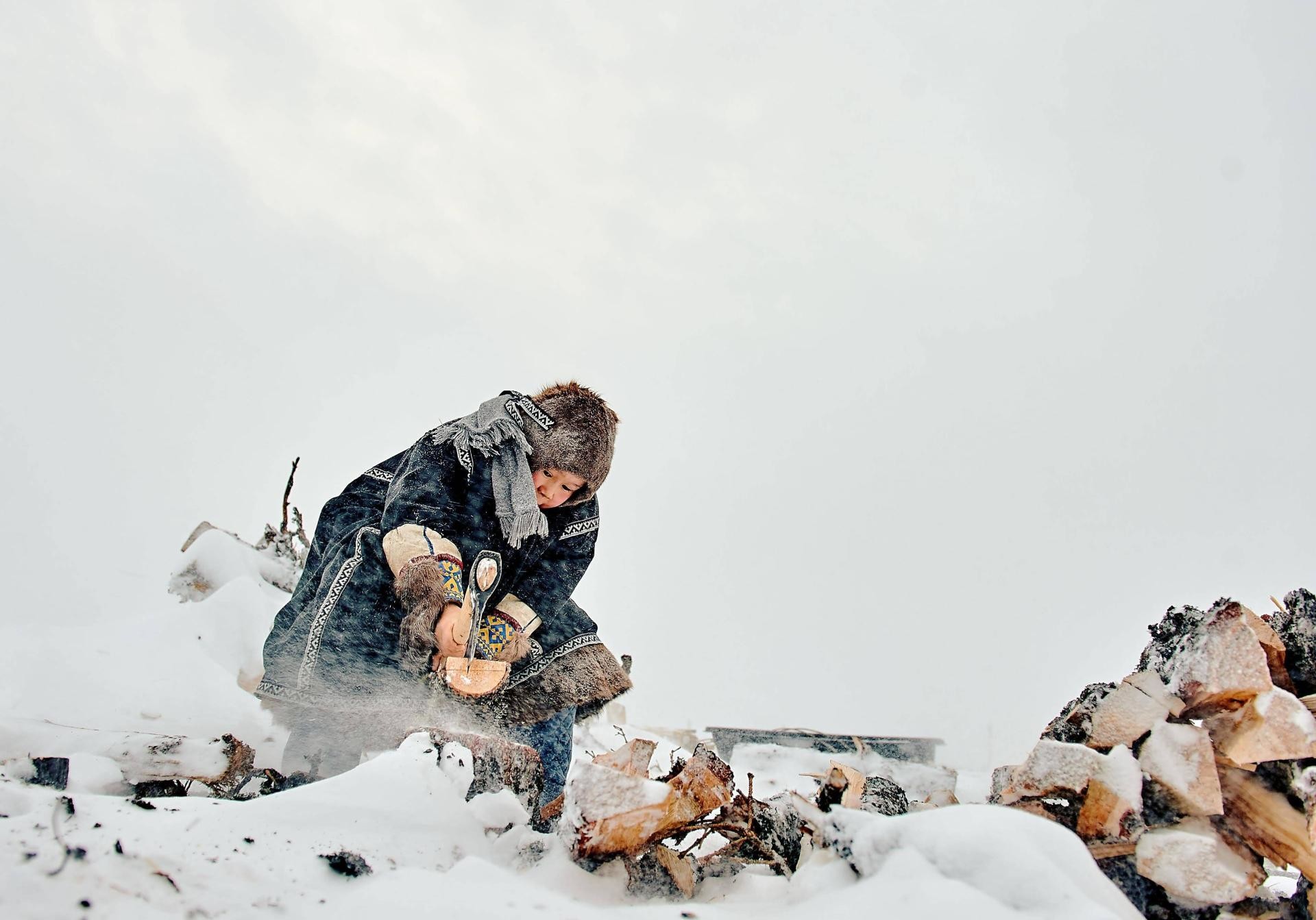 During winter, Yamal’s nomads move to a new location every 3–4 weeks, traveling several dozen kilometers across the tundra. The men tend to the herds, while the women manage all aspects of daily life. It is the women who prepare reindeer hides used to cover the chum in winter. The hides must be carefully treated and smoked before use. Another vital responsibility is sewing warm, practical clothing for the entire family.