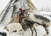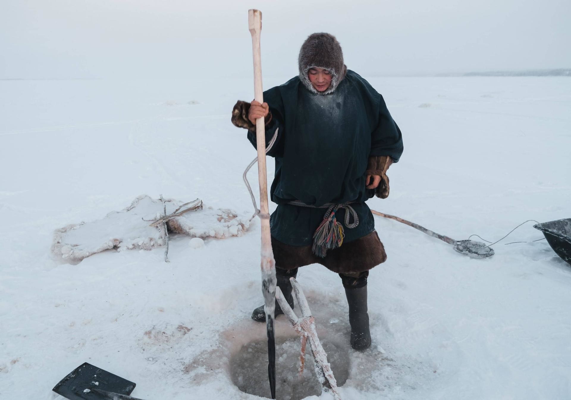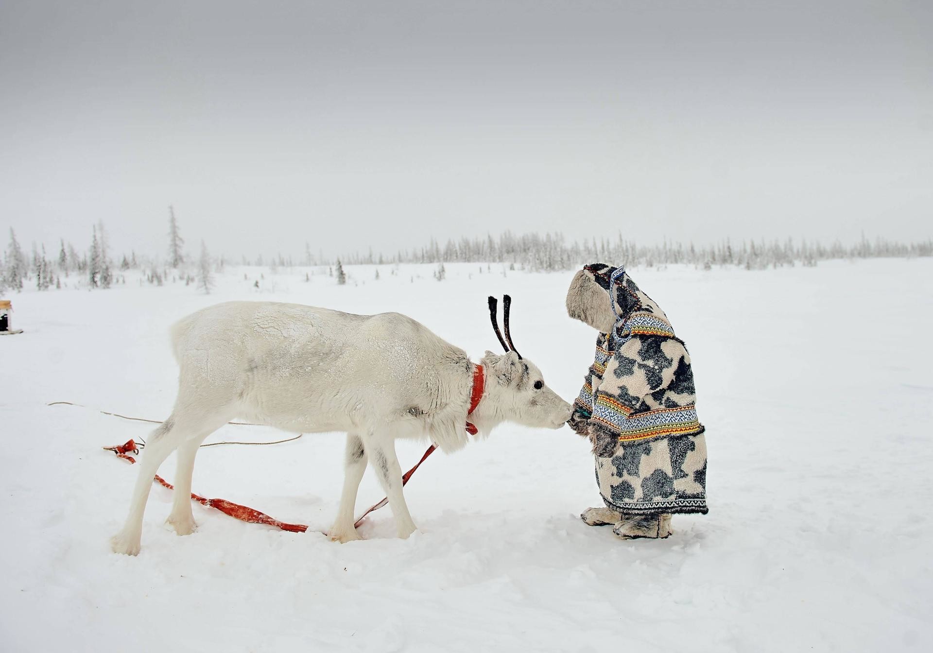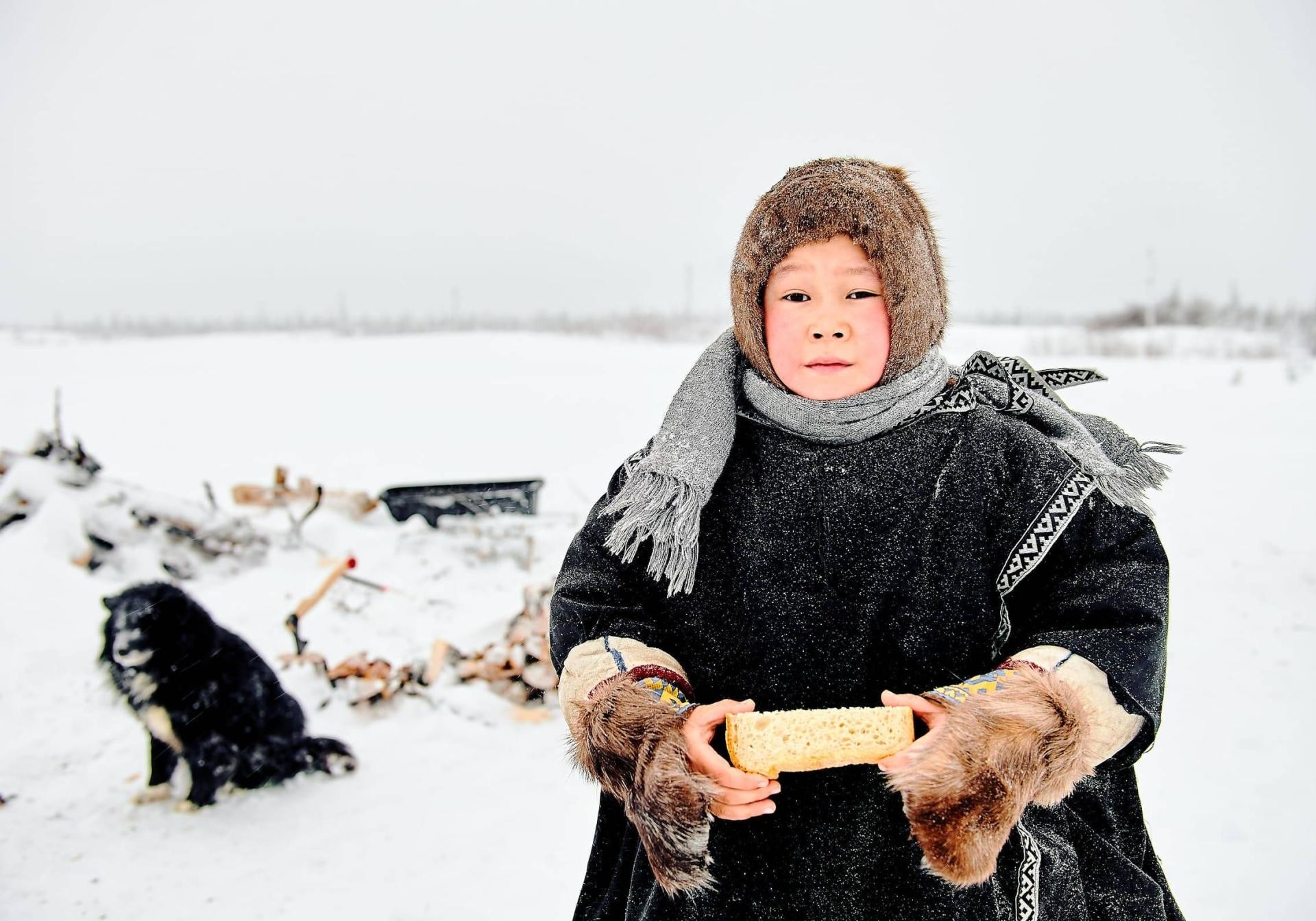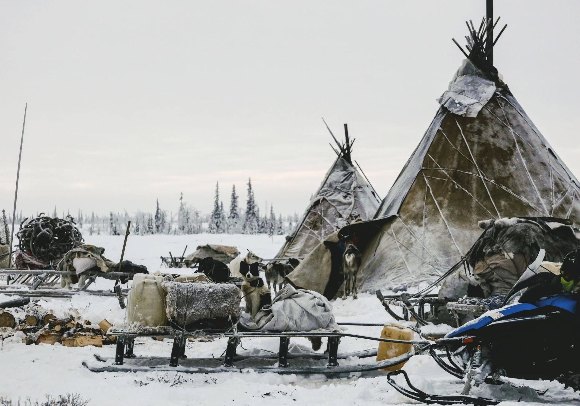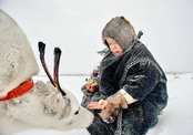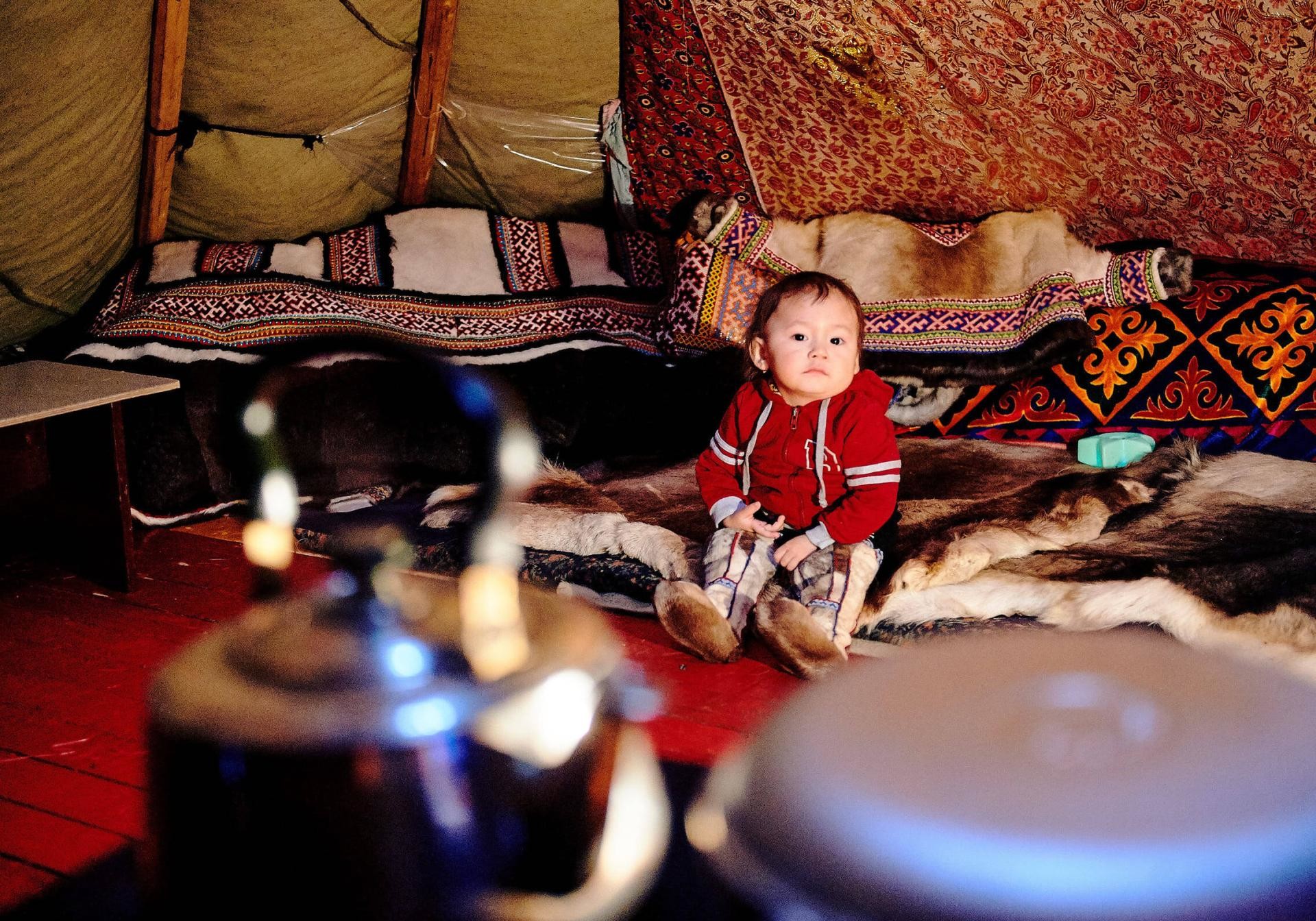 During winter, Yamal’s nomads move to a new location every 3–4 weeks, traveling several dozen kilometers across the tundra. The men tend to the herds, while the women manage all aspects of daily life. It is the women who prepare reindeer hides used to cover the chum in winter. The hides must be carefully treated and smoked before use. Another vital responsibility is sewing warm, practical clothing for the entire family.