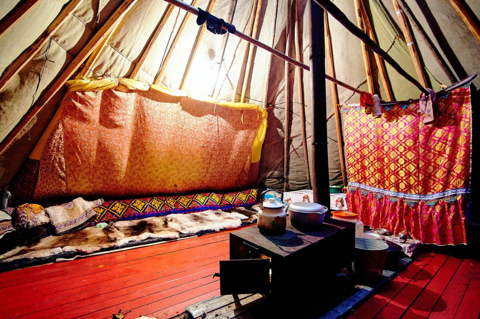 The lifestyle of Yamal’s nomads has remained unchanged for centuries. Be prepared for a simpler way of living, far from modern comforts. You’ll stay in a traditional chum (nomadic tent) with a herder’s family, sleep on reindeer skins, and share meals of local cuisine cooked over a stove or open fire.