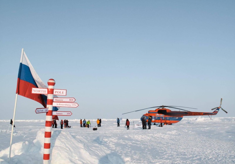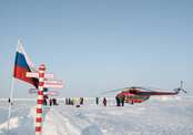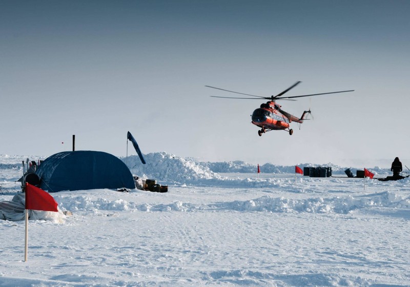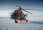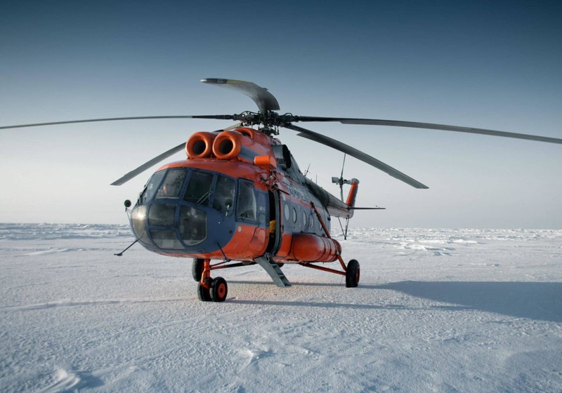 helicopter flight on a Mi-8 from the ice base to the North Pole and back