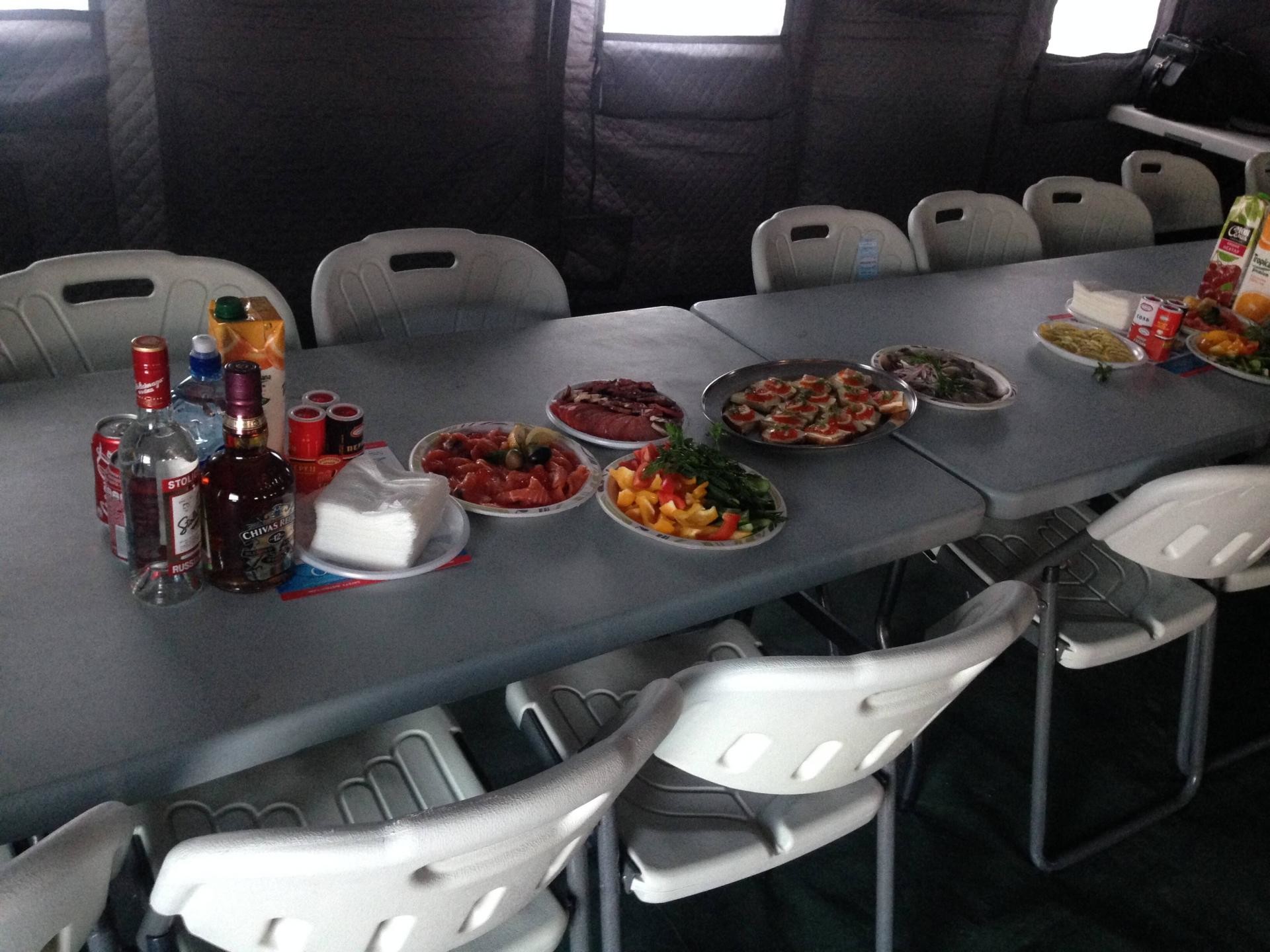 The third day you will stay at the A.N. Chilingarov ice base, located on a drifting ice floe. There are special heated tents, that can accommodate 10 up 12 people. The tents are made of modern thermal insulation material that can resist low temperatures and strong winds. The temperature inside the tent is around +68°F (20°C). You will be provided with a portable awning beds and sleeping bags.