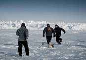 After breakfast, you will have free time at your disposal. If you wish, you can take a short cross-country skiing route in the vicinity of the base (skis will be provided) or take a plunge in an ice pool (a polynya) in the waters of the Arctic Ocean.