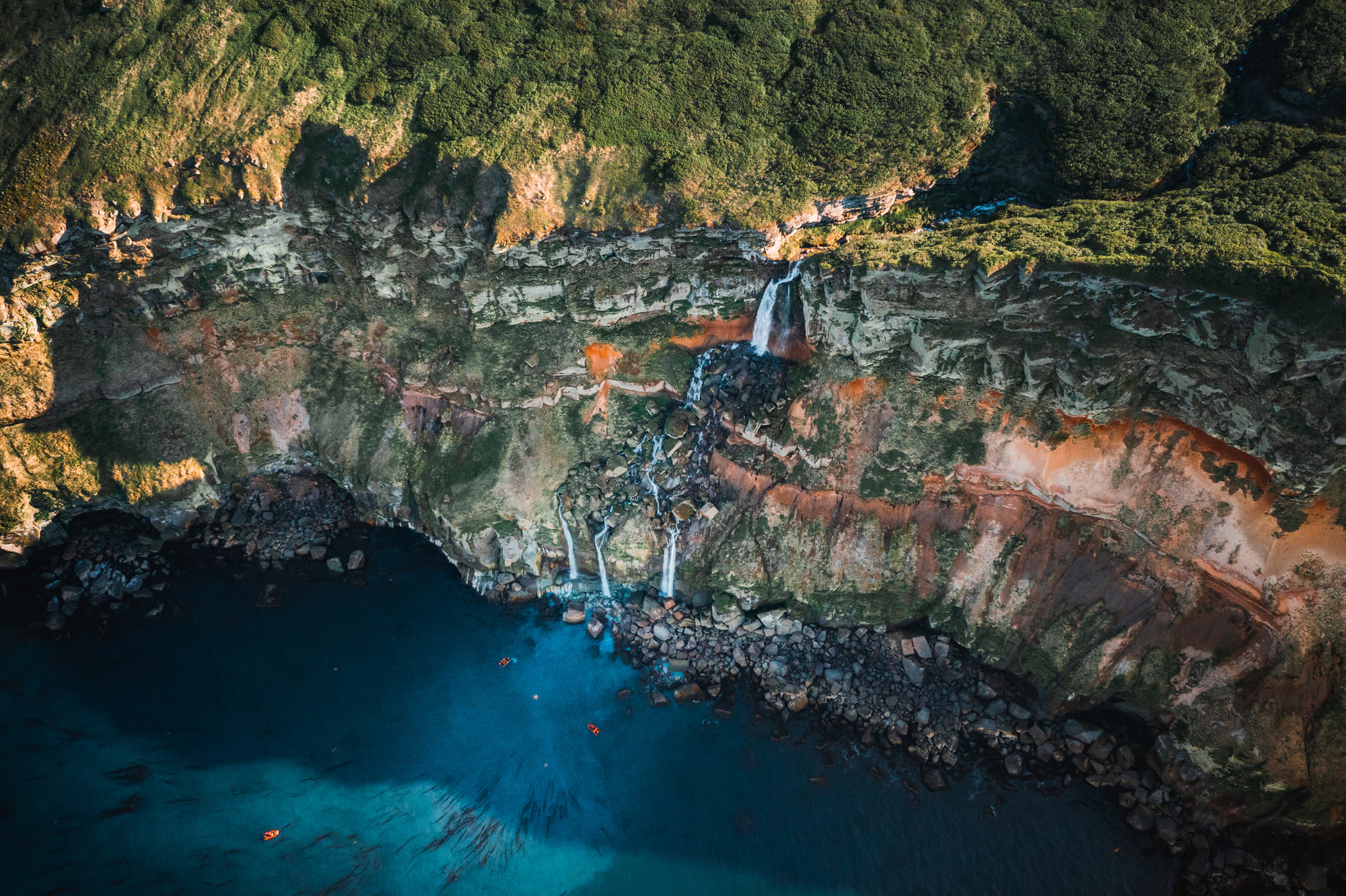 Your first stop today is Atlasov Island, the northernmost island of the Greater Kuril Chain. This is home to active Alaid Volcano (2,339 m), the highest point in the entire Kuril Archipelago. The island hosts foxes, fur seals, harbor seals, and sea otters. Thick seabird colonies of guillemots, gulls, and puffins nest here, and sometimes you may spot cormorants as well.