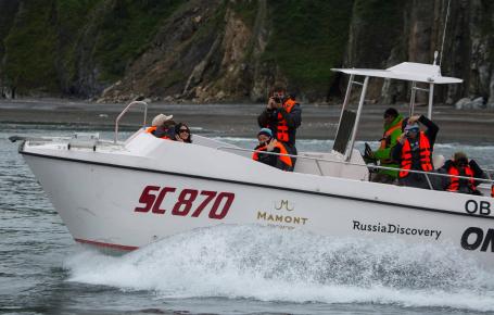 The sea crossing from Perovsky Cape to Wrangel Bay and back will be on a high-speed catamaran boat (travel time is 6-10 hours). The boat's capacity is 15 people. There are comfortable chairs on board. This boat was designed specifically for the harsh conditions of the region. The catamaran is high-speed, so the passengers do not get seasick.