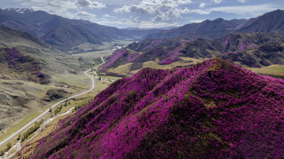 In early May, the Altai Mountains showcase the entire spectrum of colors: pink-lilac bushes, like a blanket covering the slopes, are in the central part of the Altai Republic. Turquoise-blue mountain lakes, framed by emerald shores, are in the east. Red-orange rocks with yellow and purple speckles are in the south.