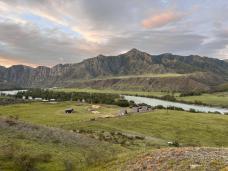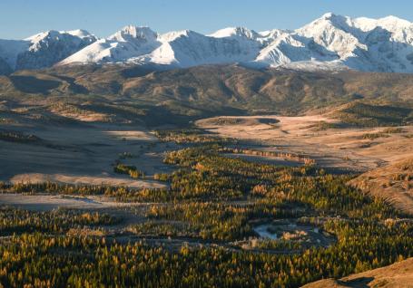 In the Kurai Steppe, a walk awaits you across the hills, offering a stunning view of the North Chuya Range covered in eternal ice and snow. The walk will conclude at a viewpoint overlooking the Chuya River meanders.