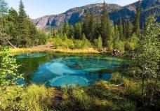 After breakfast, you will set off back to Gorno-Altaisk. Along the way, you will stop at Geyser Lake — one of the symbols of Altai. Its bottom is covered with a mixture of blue clay and sand — rising and settling, it creates beautiful patterns. Here you can take a walk and take striking photographs of the bright turquoise lake.