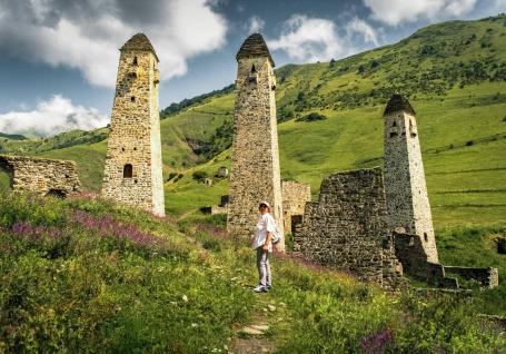 In North Ossetia, you will visit the "City of the Dead" Dargavs, the Dzivgis Fortress, and the Assumption Monastery