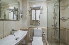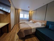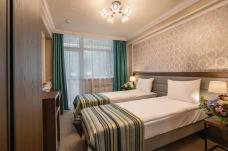 The hotel is located in the center of Vladikavkaz, on the bank of the Terek River. You will stay in standard twin rooms with either one double bed or two single beds, a TV, air conditioning, and a private bathroom with a shower.