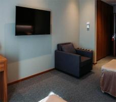 The hotel is located on the grounds of the eponymous ski resort. You will stay in a standard twin room with either one double bed or two single beds, a private bathroom, a TV, and a desk. The room offers a mountain view.