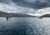 After breakfast, you, your guide, and a national park ranger will set out by boat into the Senyavin Strait. If the ranger spots whales, they will indicate a safe distance from which you can observe them.
